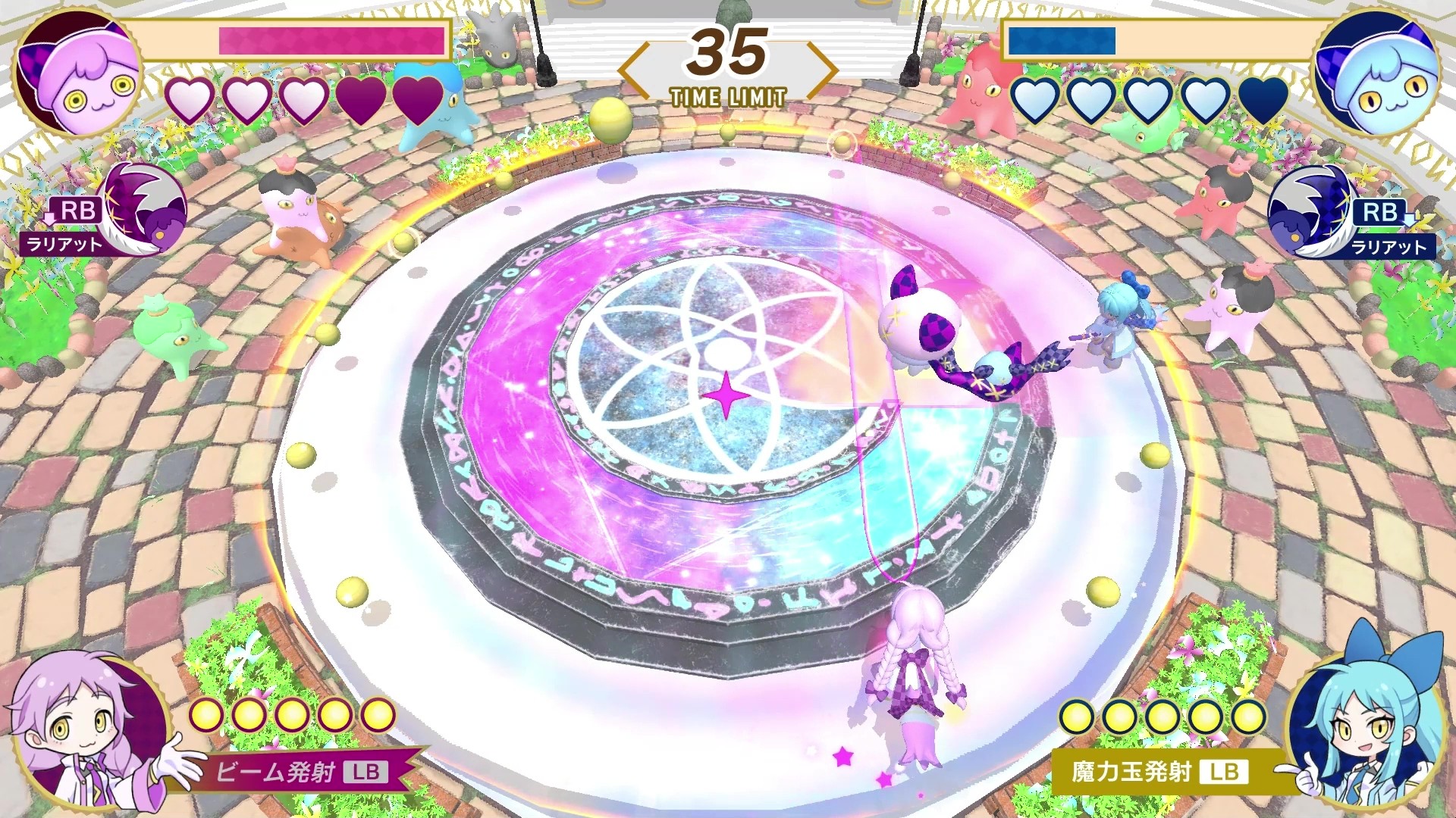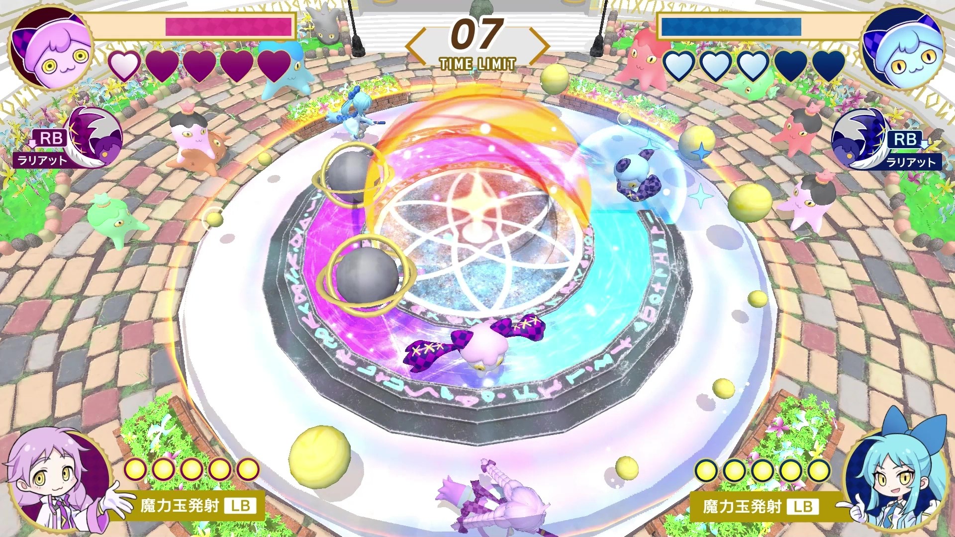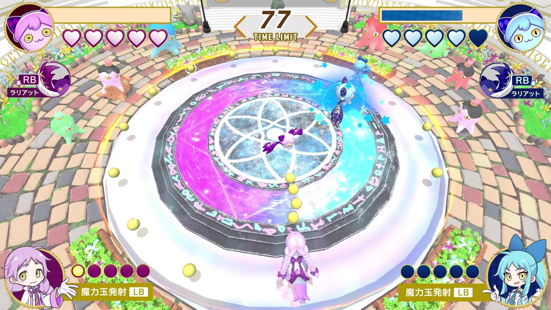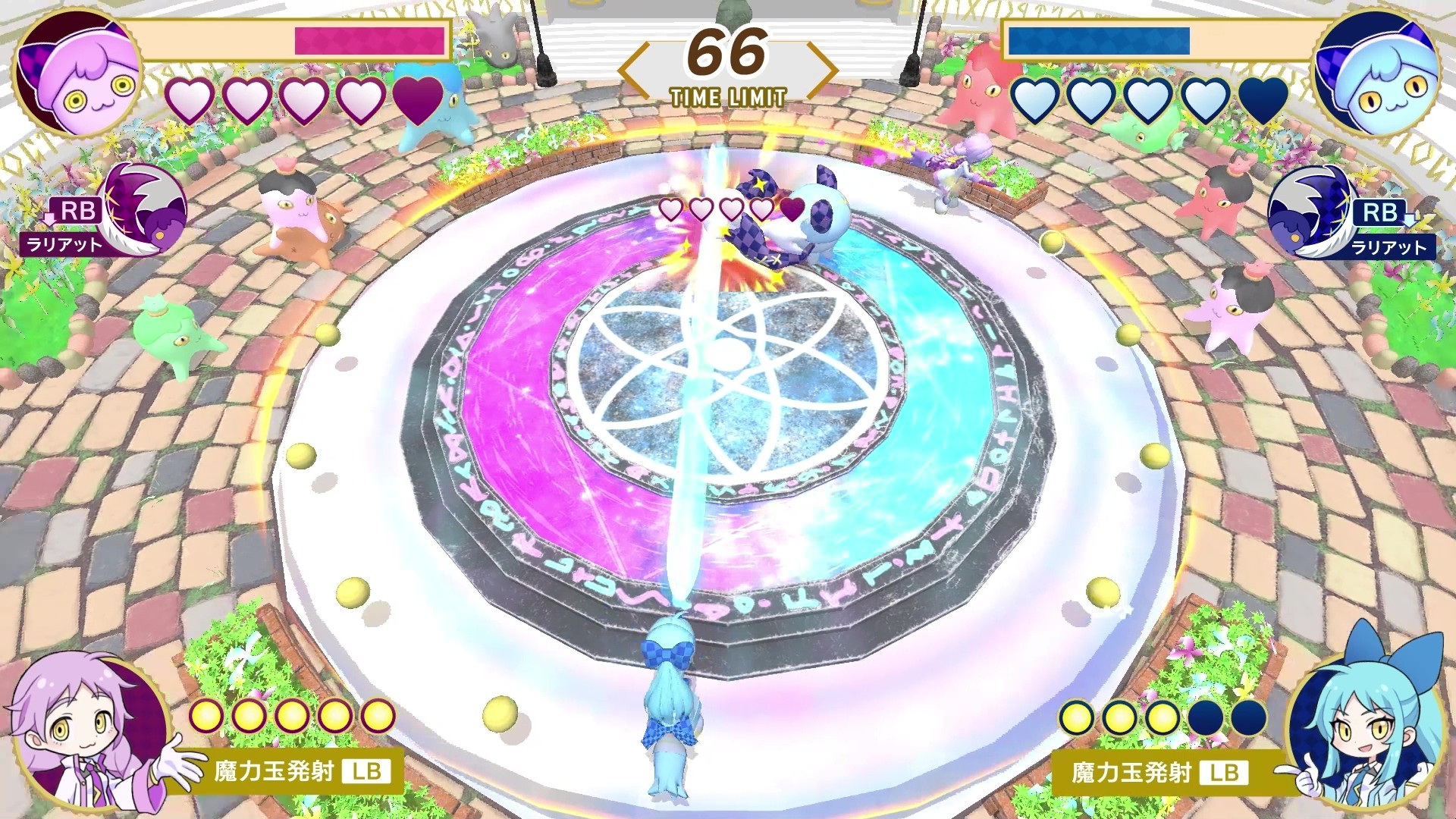 南井:魔法少女が中心に向かって弾を投げたりビームを撃ったりする際に、照準を合わせるボタンを導入するかどうかについては、かなり悩みましたね。移動+球を撃つという2つの操作に加え、3つ目のボタン操作をすることになります。テストで照準ボタンを入れてみたところ、パートナーに迷惑になるくらい操作がガタガタしてしまいました。そのためボタンは少なくしたほうが良いという判断をして2つだけに絞りました。