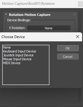 続いてY Rotation:Noneもクリックし、デバイスをMouse Input Deviceに設定します。