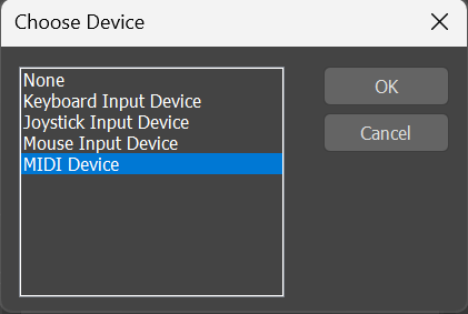 こちらはMIDIのチャンネルを選ぶ画面となります。