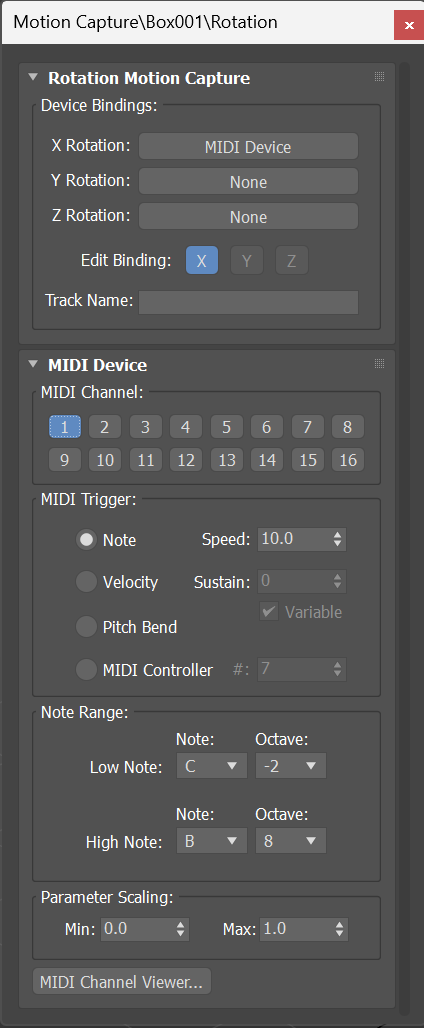 ここでMIDI信号が3ds Maxに入力されているか確認出来ます。