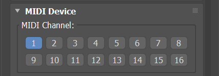 こちらはMIDIキーボードの入力Chを切り替える設定画面です。