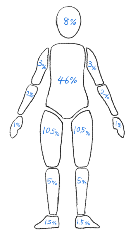 各部位の質量は体重から逆算して一括で設定したいので、割合を定義します。『人体 質量比』などでネット検索するといくつか文献が出てきますので参考にさせていただき、今回は以下のように比率を定義したいと思います。