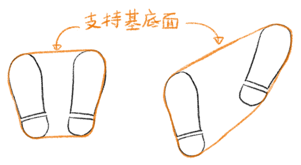 ・支持基底面(Base of Support:BOS):複数の代表点のうち接地しているものによる凸包。