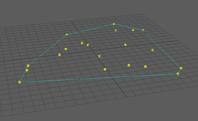 まずは地面に接する可能性のある部位に複数の代表点を配置します。地面(水平な平面)から一定距離以内に入った代表点を「接地している」とみなして、支持基底面の構成要素にしてみます