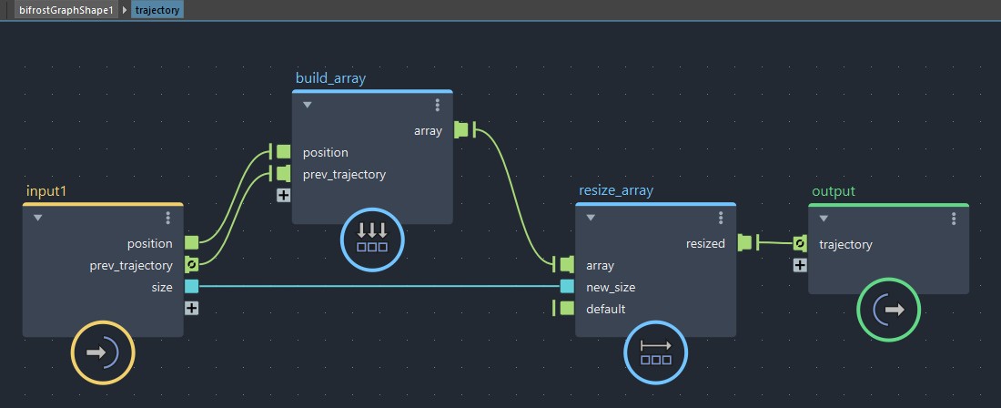 次は重心の軌跡と速度を描画してみます。軌跡は過去数フレームの重心位置を配列で feedback ポートに保存しておき、 strands を描画しようと思います。重心の速度ベクトルは、表示目的であれば方向だけ分かれば十分なので前のフレームからの位置差分をそのまま使いますが、誤差をならすために過去2〜3フレーム分の平均を取ることにします。