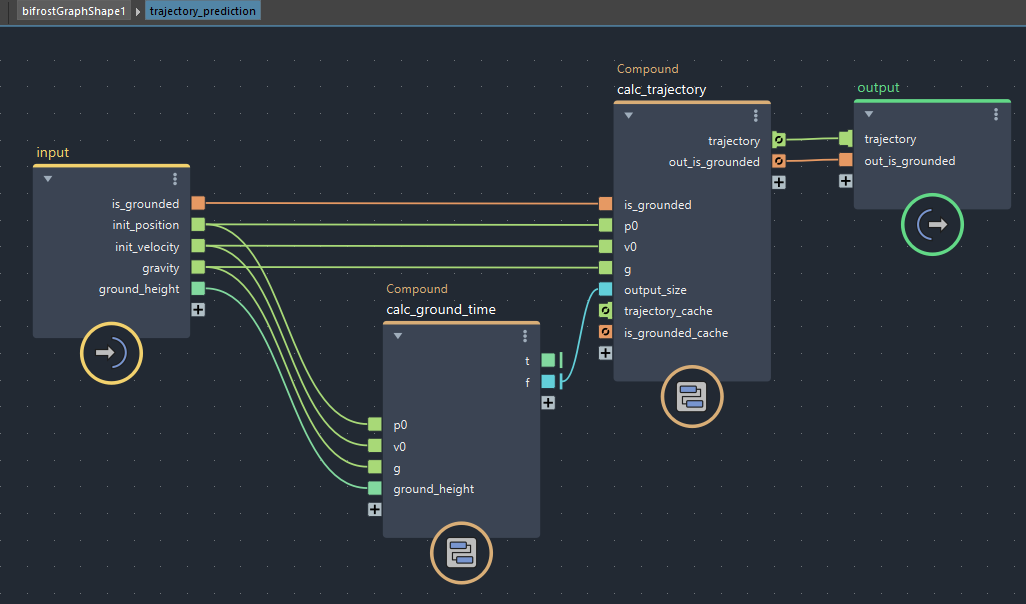 ・軌道予測:速度と重力を元に軌道を予測。【※非接地中のみ】