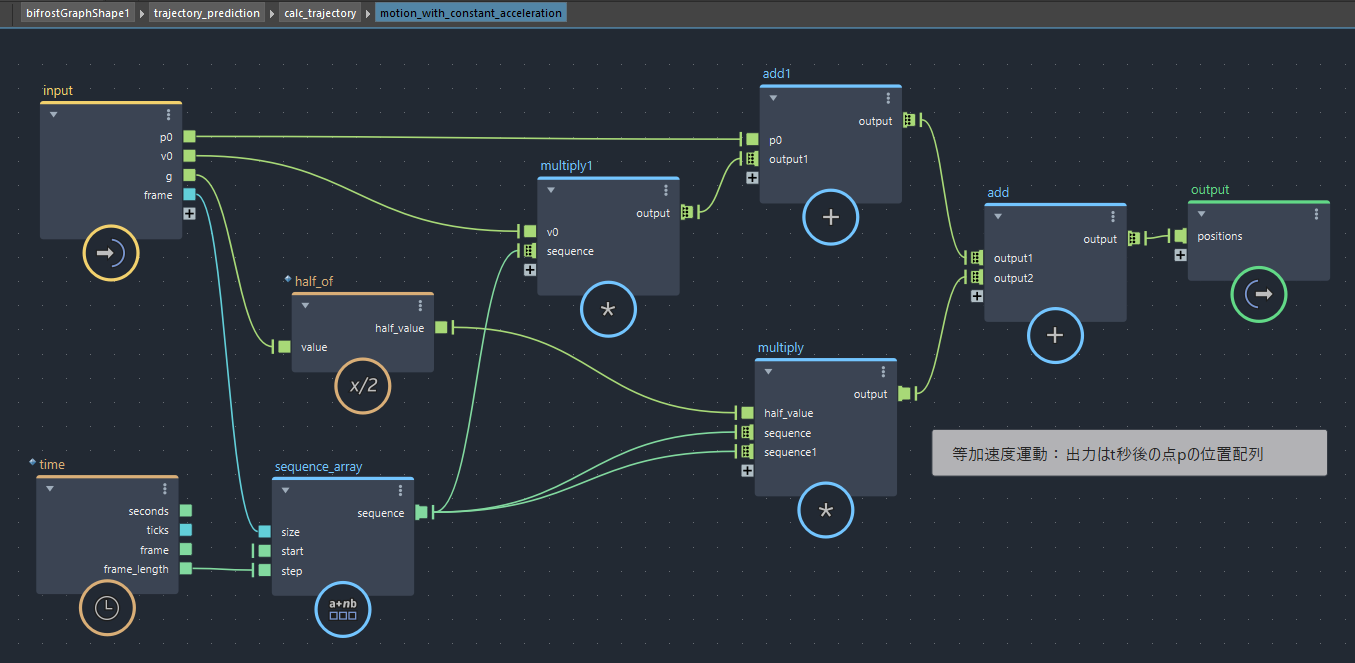 あとはt秒後までの各フレームにおける位置をすべて計算し strands を描画すれば未来の軌道が描けます。