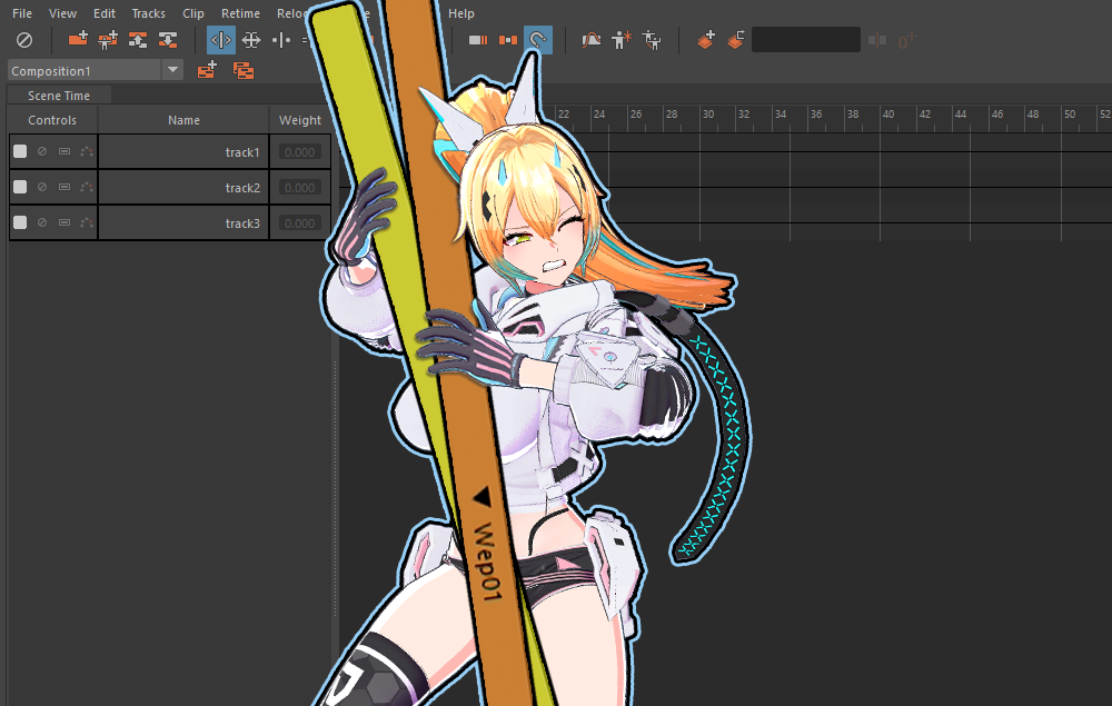 対象のノードと紐づけてクリップを作成しますが、TimeEditorの「挙動の重さ」について対処を考える必要があります。