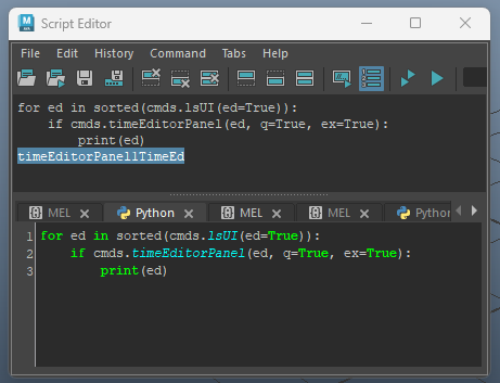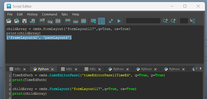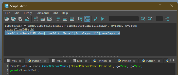 paneName = cmds.paneLayout(p=timeEditorPanel, cn='vertical2', ps=(1, 20, 100))