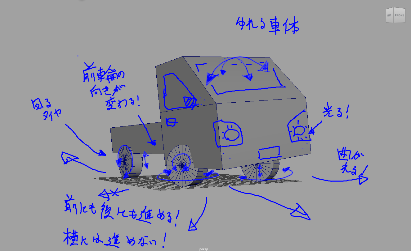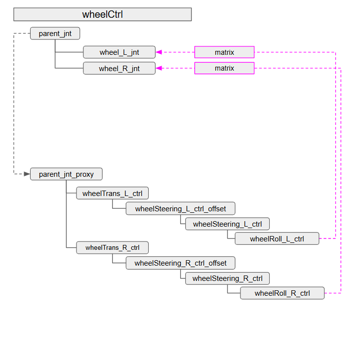 frontWheel_L/R:前輪に関しては、車輪毎のコントローラーもつけたいので wheelCtrlモジュールで必要な情報も追加しました。