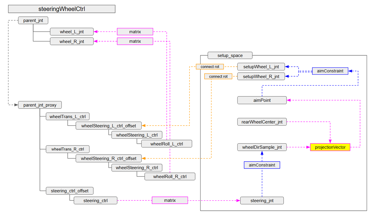 参考データ:carA/sampleScenes/steeringSample_v002.ma(記事の最後のダウンロードリンクからダウンロードできます。)