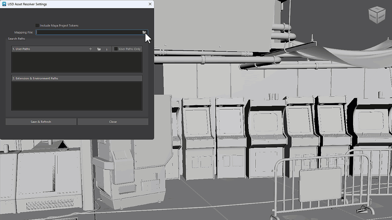 USD for Maya 0.34 にアセットリゾルバ(Asset Resolver)が導入され、アセットのロードが合理化され、プロジェクトの移植性が向上しました。検索パスとトークンを使用してパスの解決を自動化し、アセットのロードを効率化します。エラーやパスの破損が減るためファイルパスのトラブルシューティングを軽減できます。この機能は Windows および Linux で使用できます。